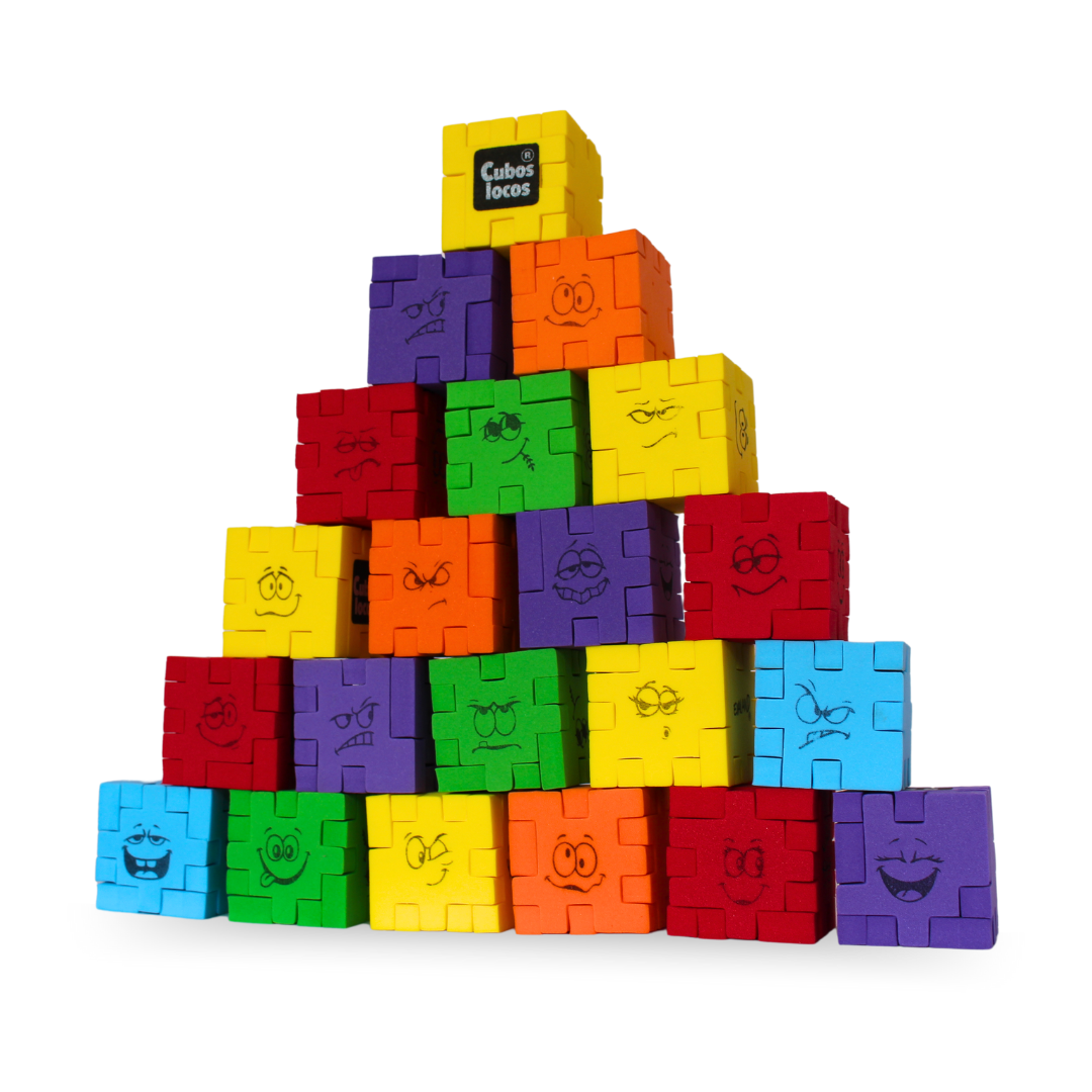 El objetivo principal de Cubos Locos es formar cubos con las 6 piezas del mismo color o mezclado. Piezas tipo puzzle decoradas con unas divertidas caras individuales que se desprenden de cada lámina de material EVA, cada una de las cuales tiene una forma y un tamaño específicos, no siendo obligatorio que queden visibles los dibujos de cada pieza.